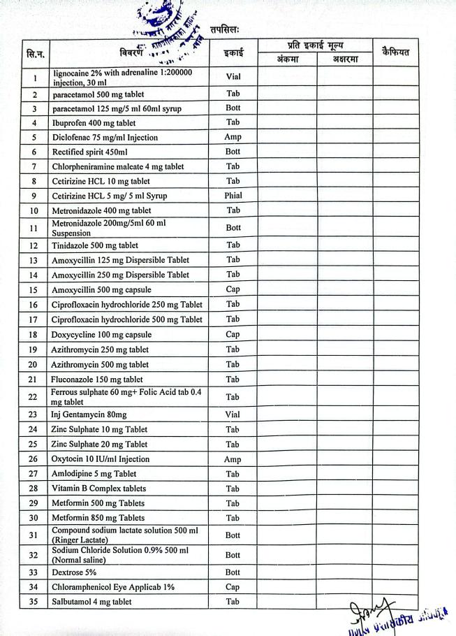 » औषधी तथा सर्जिकल सामाग्रीहरुको दररेट पेश गर्ने सम्बन्धि सुचना