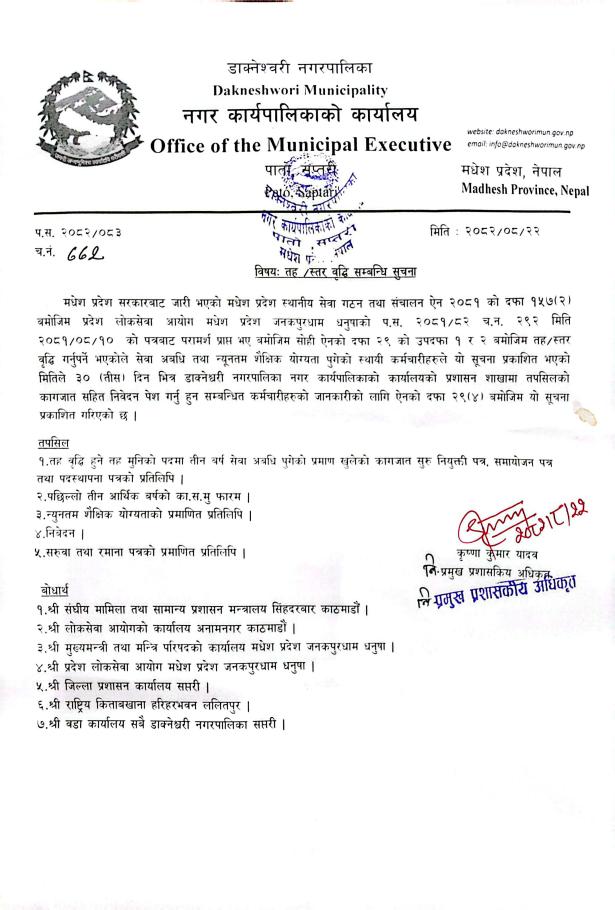 तह/स्तर बृद्धि सम्बन्धी सूचना ।