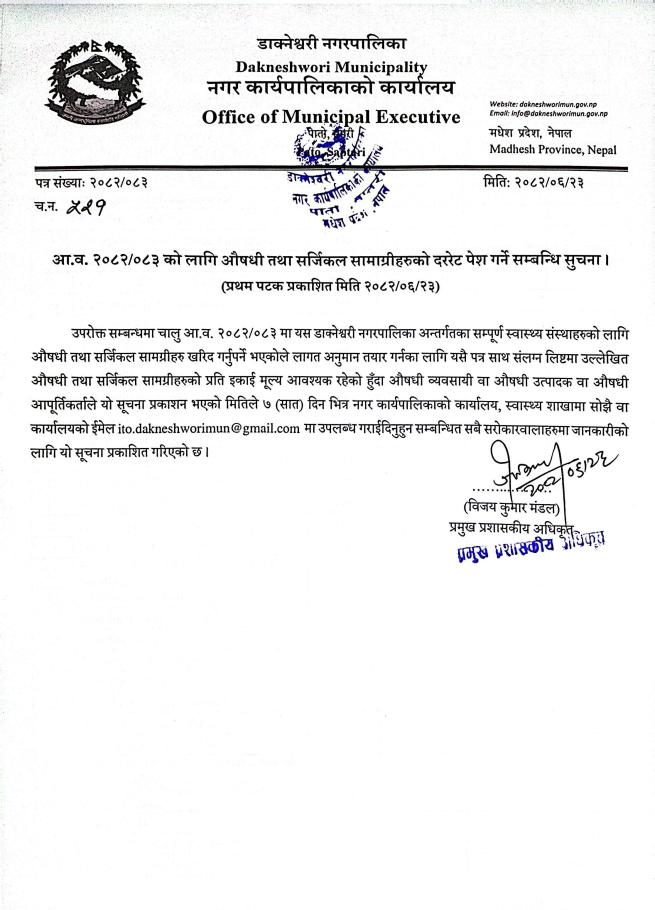औषधी तथा सर्जिकल सामाग्रीहरुको दररेट पेश गर्ने सम्बन्धि सुचना
