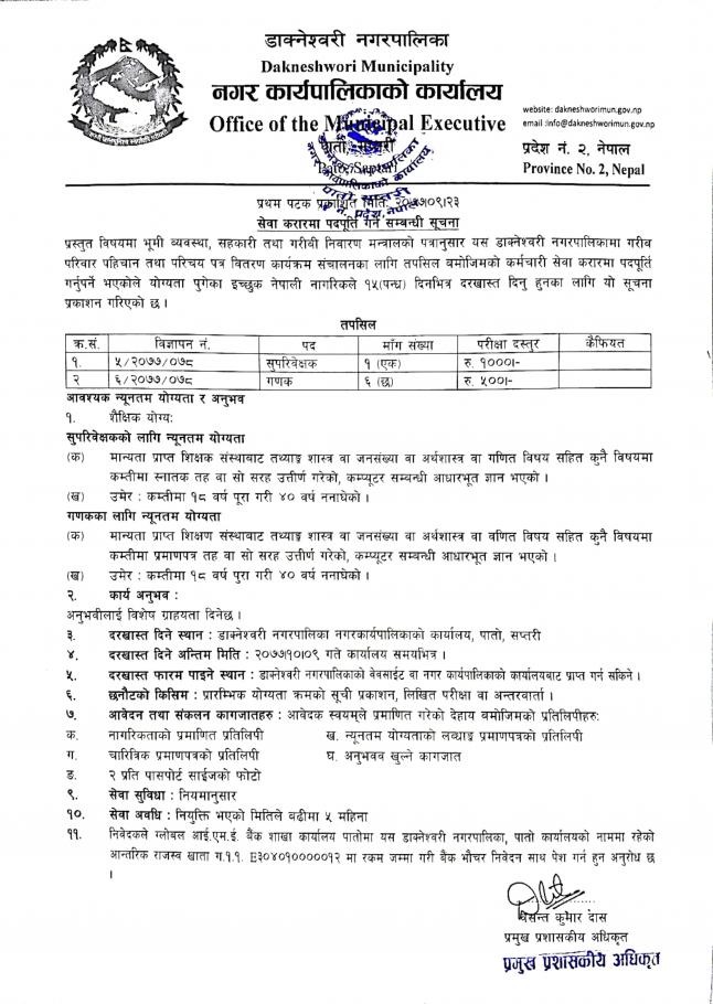 गनक र सुपरिबेक्षक करार पदपूर्ति गर्ने सम्बन्धि सूचना ।