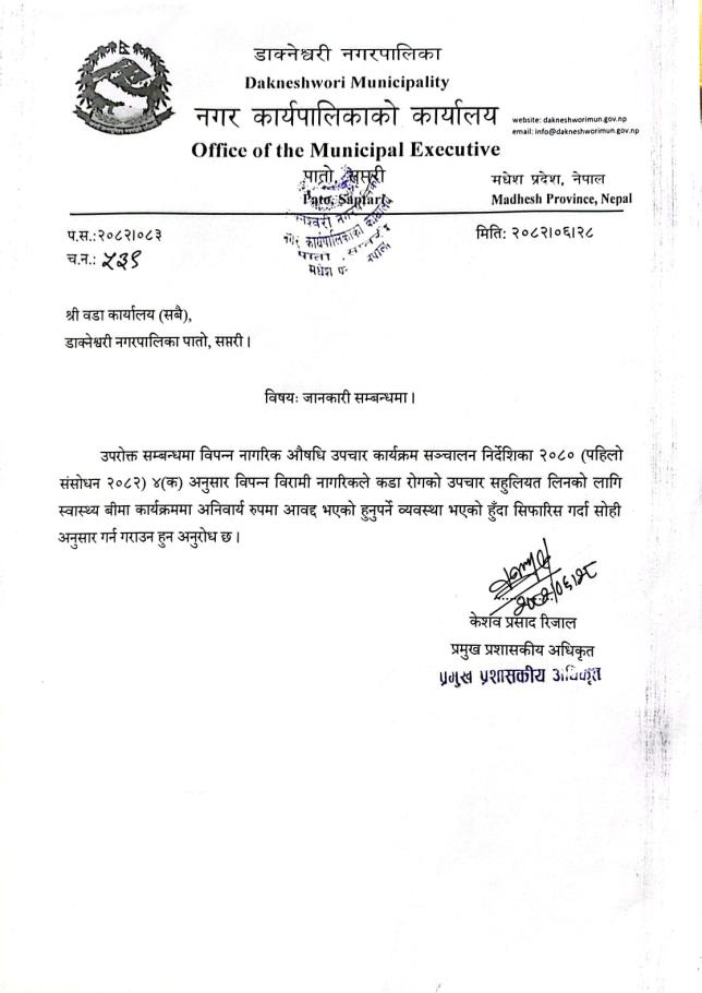 उपभोक्ता समिती गठनको लागी सूचना सम्बन्धमा।