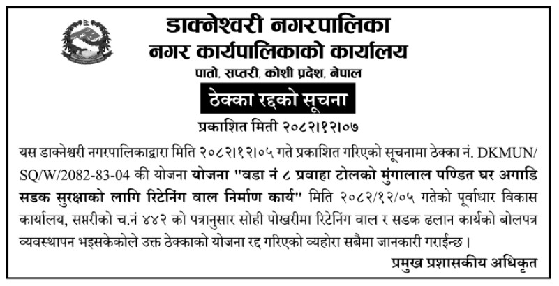 ठेक्का रद्दको सूचना