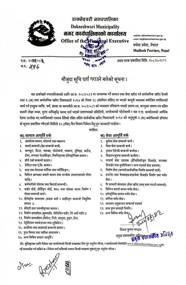 क्याटलग सपिङ्ग विधिबाट हेभीइक्विपमेन्ट खरिदको लागि सूचिकृत हुन आह्वान गरिएको सूचना
