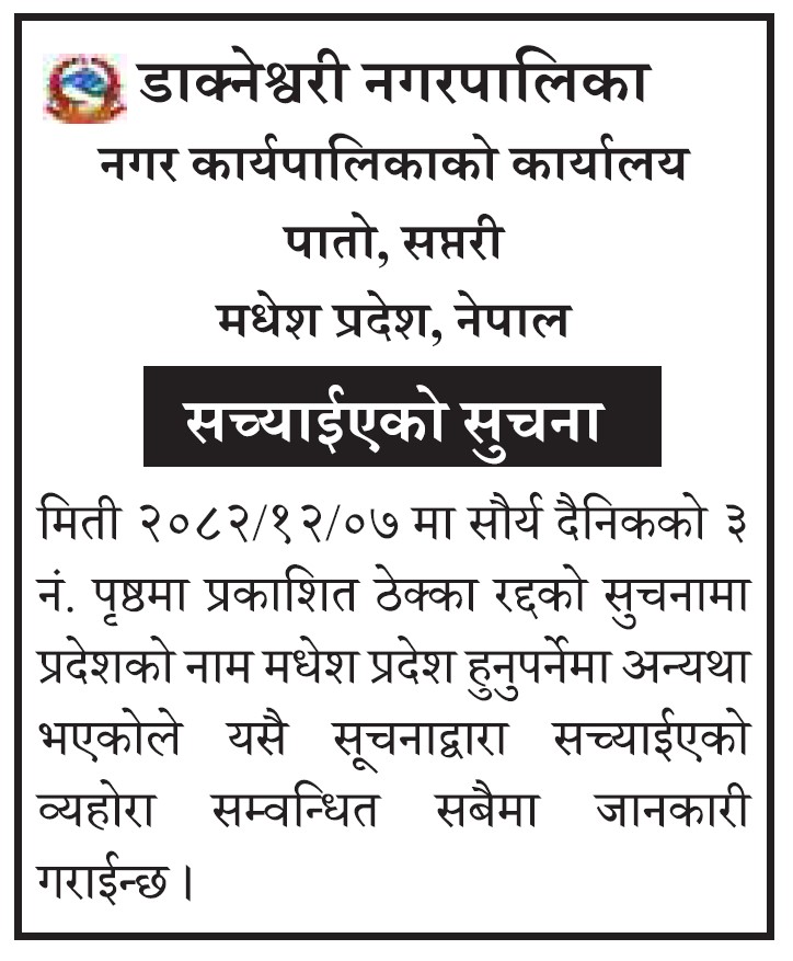 सच्याईएको सुचना