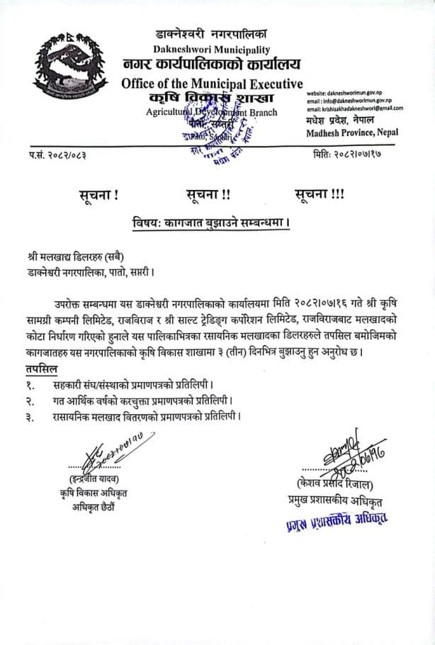 उपभोक्ता समिती गठनको लागी सूचना सम्बन्धमा।